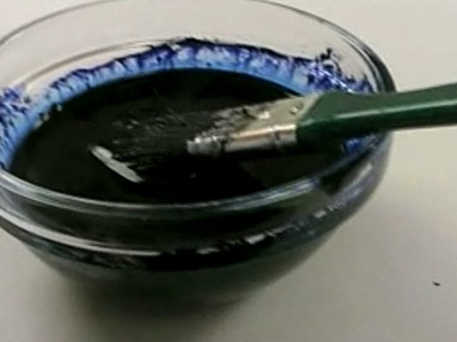 Нам потребуется:вода, кисти, синий анилиновый пигмент, доска, ветошь, перчатки.